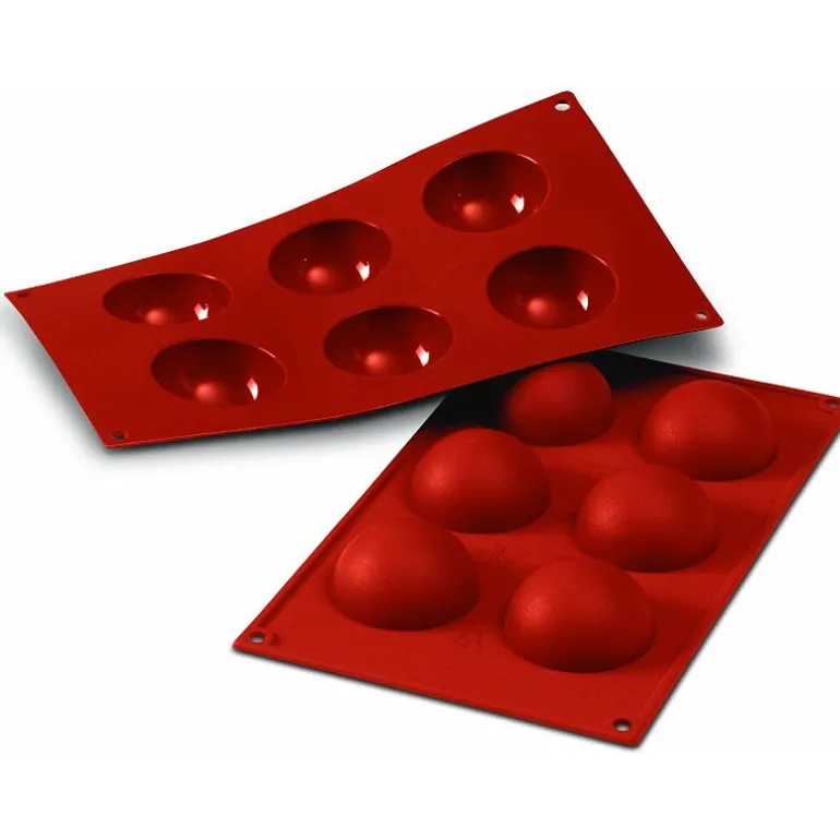 La flexibilidad de la silicona junto con su buena resistencia ha permitido que los instrumentos de cocina fabricados en este material se vuelvan muy populares, especialmente en cuanto a moldes se refiere, tal como este molde de silicona semiesfera, que permite su uso para moldear postres o aperitivos tanto en frio como en el horno.
