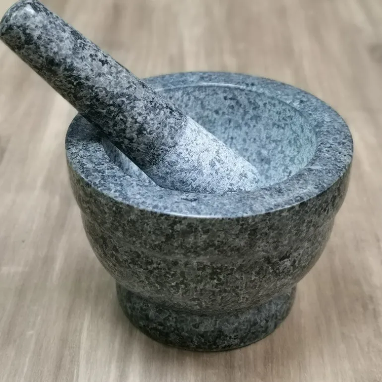 El mortero de cocina de granito es uno de los utensilios importantes en la cocina ya que con el puedes obtener un buen molido de las especias o hierbas para elaborar cualquier tipo de receta.