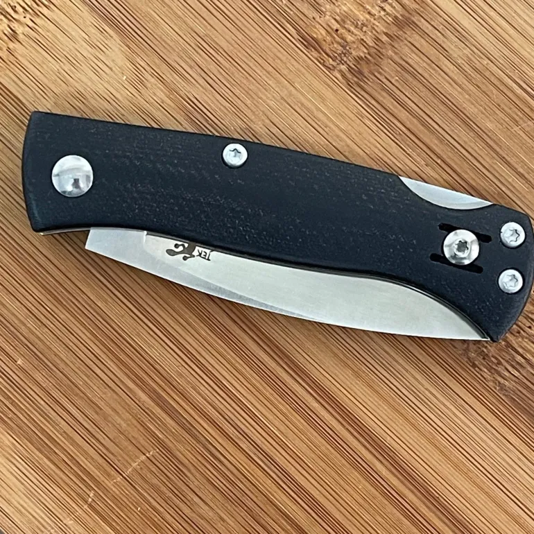 - 323522 Navaja Salamandra con hoja de acero D2, mango Flax, atornillada, tamaño de hoja 75 mm, tamaño mango 95 mm, grosor hoja 3 mm, sistema de cierre de bloqueo.