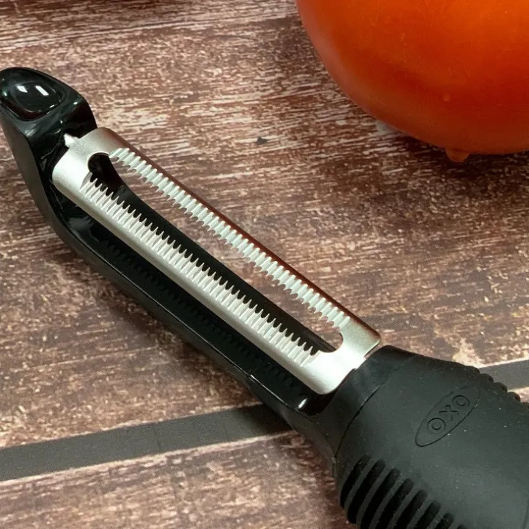 El pelador de tomates OXO es una herramienta de cocina diseñada para pelar tomates y otras frutas y verduras de piel suave, como kiwis o melocotones. Este pelador esta fabricado por OXO, una empresa estadounidense conocida por sus productos de alta calidad para la cocina y el hogar.
