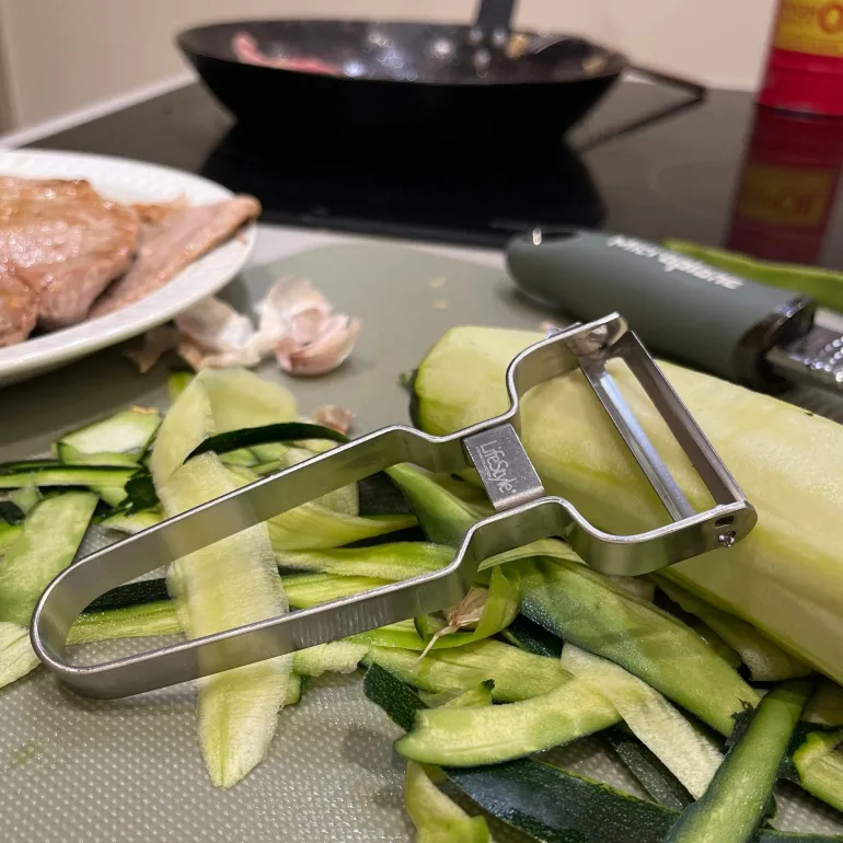 Descubre la belleza de la cocina con nuestro pelador de verduras de fácil uso. Fabricado en acero inoxidable, su diseño elegante y sofisticado te permitirá pelar de manera rápida y eficiente. Ahora preparar tus verduras será más fácil y elegante que nunca. ¡Descubre la verdadera esencia de la cocina de lujo!