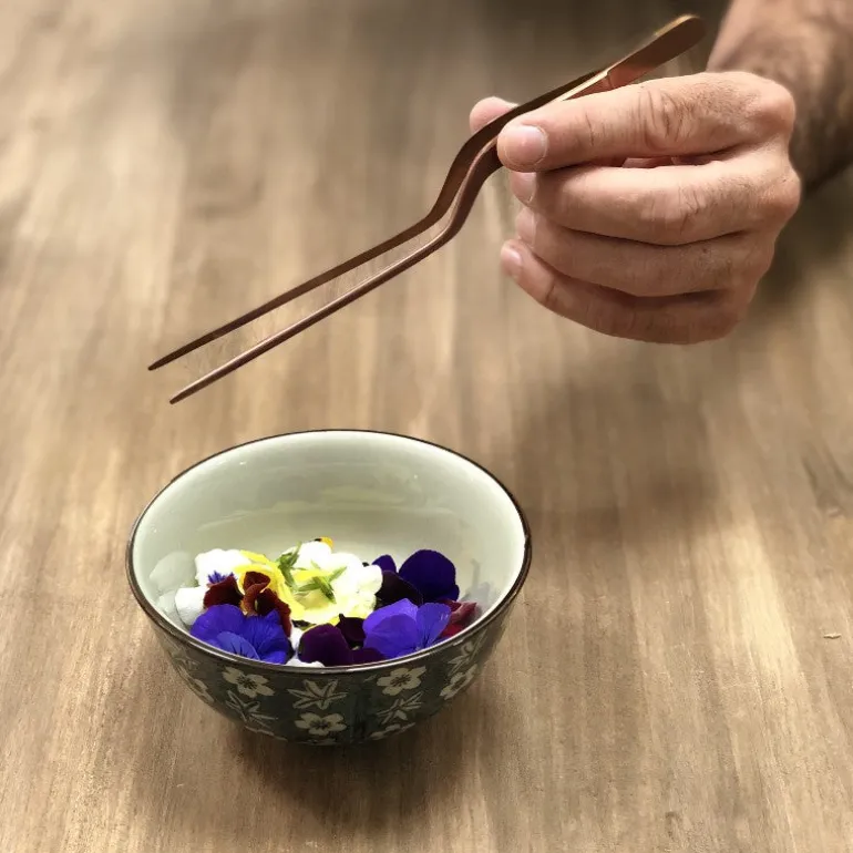 La pinza para emplatar color cobre está pensada para la manipulación de alimentos pequeños, especialmente aquellos con textura blanda, de los cuales permite su emplatado sin aplastarlos o romperlos. Sus características le hacen también un utensilio excelente para la decoración de platos y postres, haciendo posible colocar o retirar elementos pequeños, como frutas, flores, entre otros elementos de manejo delicado durante la decoración de alimentos.