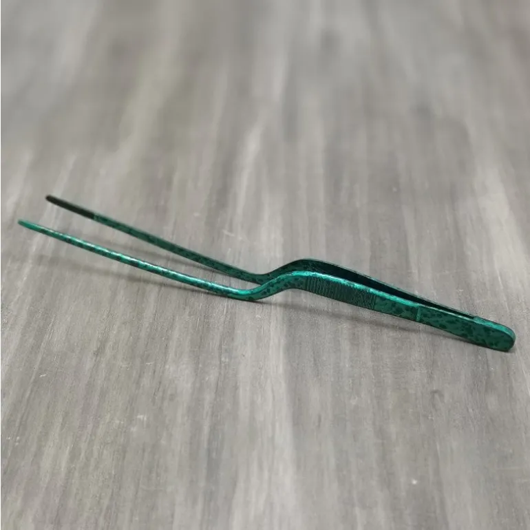 - Es una pinza pensada para manipular y emplatar alimentos cortados en trozos pequeños.