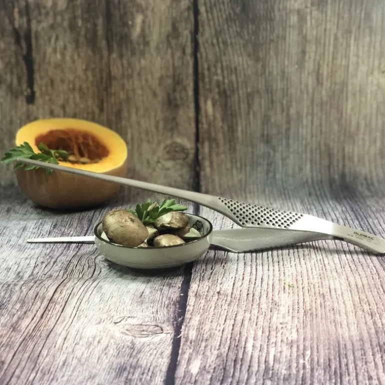 La pinza de Chef es un utensilio fundamental en la cocina profesional, ya que la fineza de su estructura hace posible al profesional de cocina detallar la decoración de los platos o bien, emplatar alimentos de forma refinada frente al comensal, todo ello con total delicadeza, pero con la fuerza de sujeción exacta que evita que el alimento resbale de las tenazas. Un excelente ejemplo de este tipo de pinza lo tenemos en este modelo de Global.
