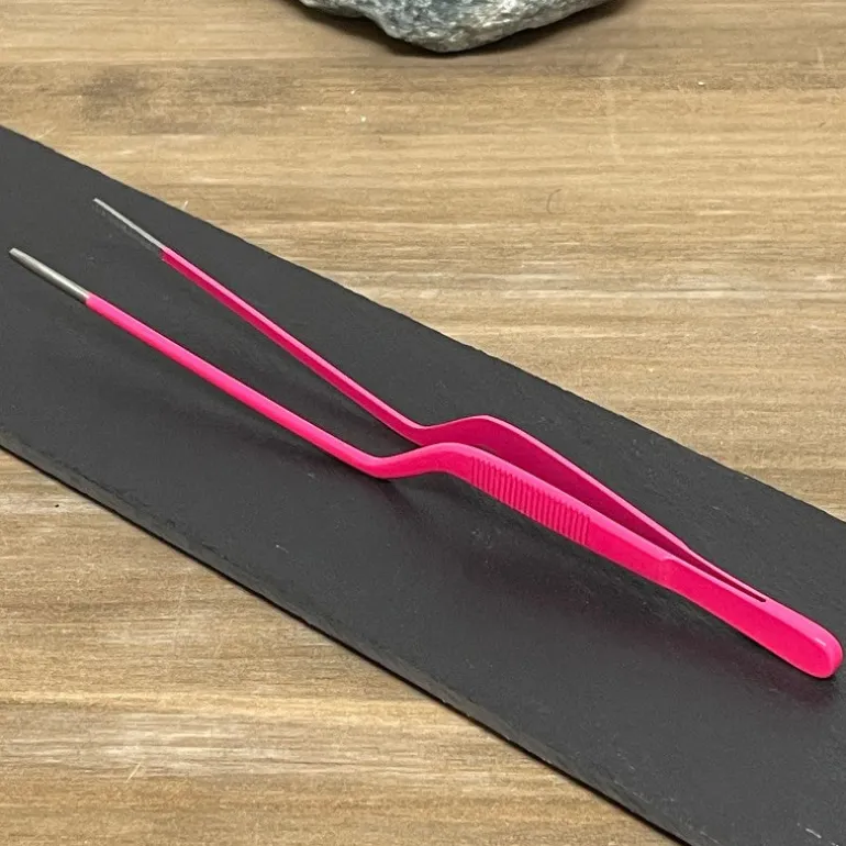 Para ser un chef profesional se requiere vocación, pues la prisa y detallismo que suele estar presente en el ambiente de la cocina de un restaurante de prestigio no es poca. Dado lo anterior un buen chef debe disfrutar de hacer las cosas con excelencia, buscando siempre la perfección en tiempo, sabor y estética del plato, siendo este último detalle, la estética, no solo concerniente al chef dentro de la cocina, sino que culmina hasta que se emplata con distinción y profesionalidad el plato elaborado, de ahí que usar una pinza para emplatar como este modelo rosa sea lo más ideal para mantener la elegancia en la mesa.