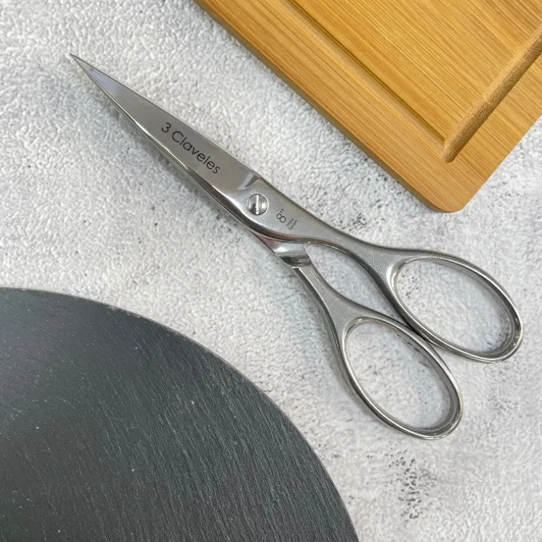 3 claveles es una empresa 100% española especializada en hojas de corte usadas en diversos mercados. Con casi 90 años de experiencia detrás, 3 Claveles sigue siendo reconocida por sus altos estándares de calidad en sus productos, tal como se puede denotar en esta tijera de cocina de la serie Grand Cuisine.