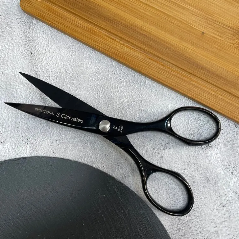 Un modelo de tijera de cocina con un acabado elegante en color negro y una fabricacion excelente, todo ello dejando en este diseño de tijera no solo un perfecto desempeño para las tareas de corte en cocina, sino también una larga vida útil. No se podía esperar menos de un utensilio de cocina con el respaldo de calidad de 3 Claveles.